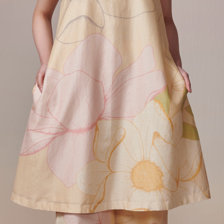 Soft beige floral chanderi set