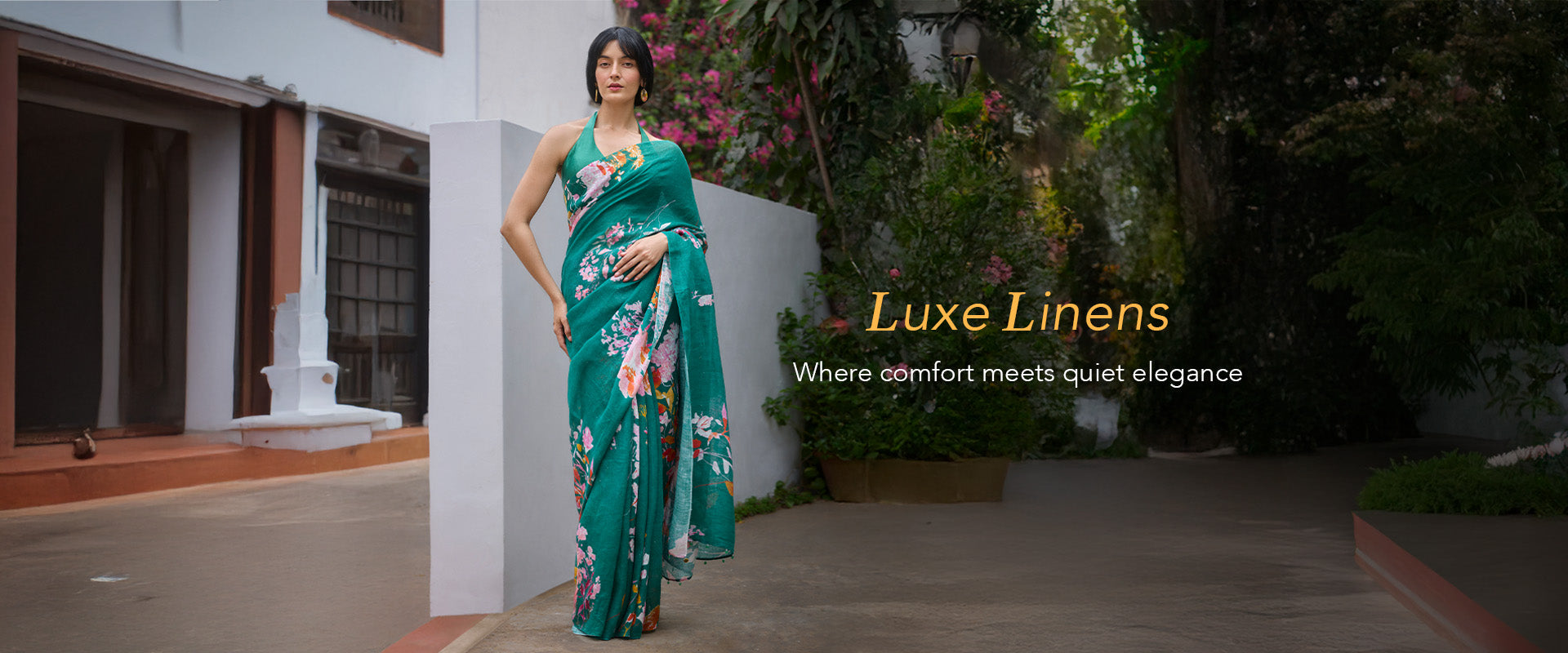 Get your saree pre-stitched into a ready to wear drape so you can simply step into it like a dress and yet get the inimitable elegance of a saree look.