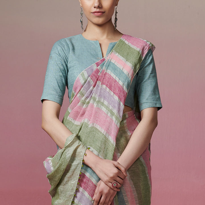 Please note that if the blouse fabric option is not available in the Addons, kindly consider that the fabric is sold out.