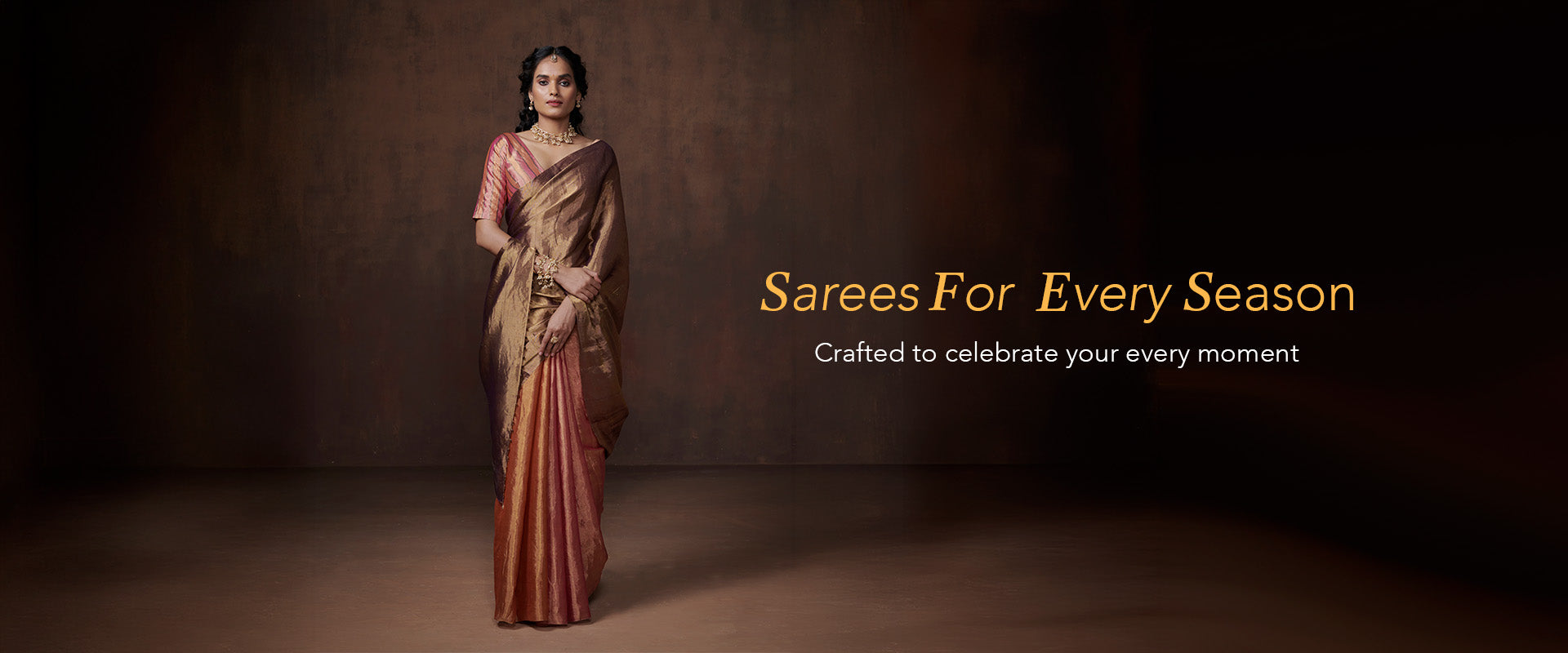 Metallic orange-gold tissue saree