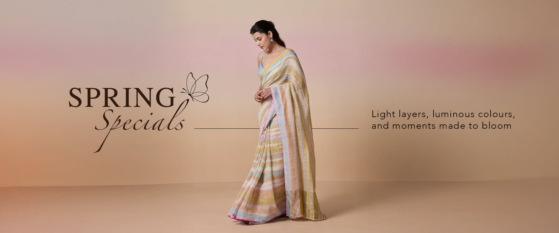 Get your saree pre-stitched into a ready to wear drape so you can simply step into it like a dress and yet get the inimitable elegance of a saree look.