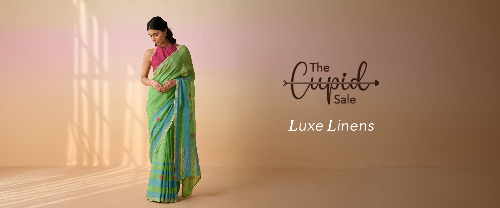 Dual-tone elegant linen saree in pink & orange with zari on pallu