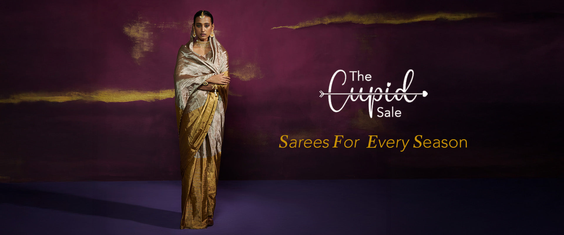 Metallic purple-gold tissue saree