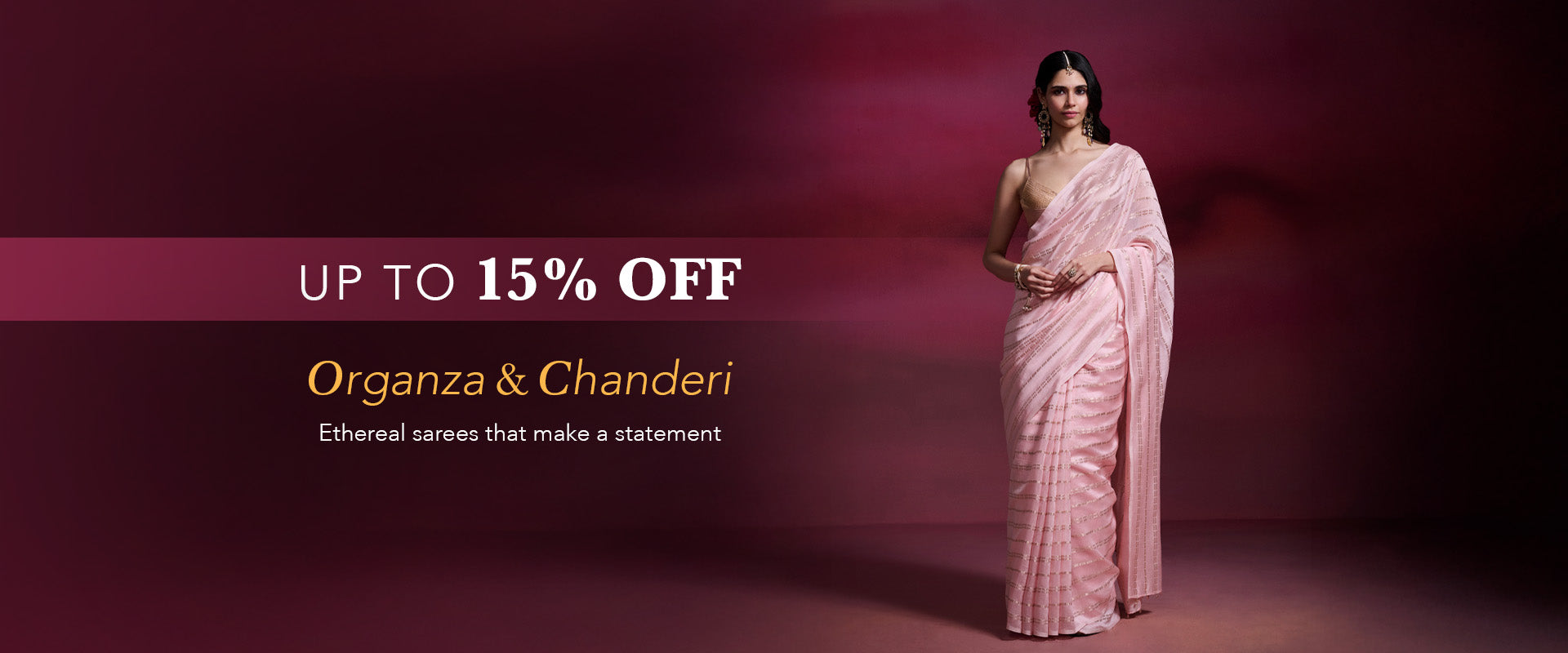 Old rose pink organza saree