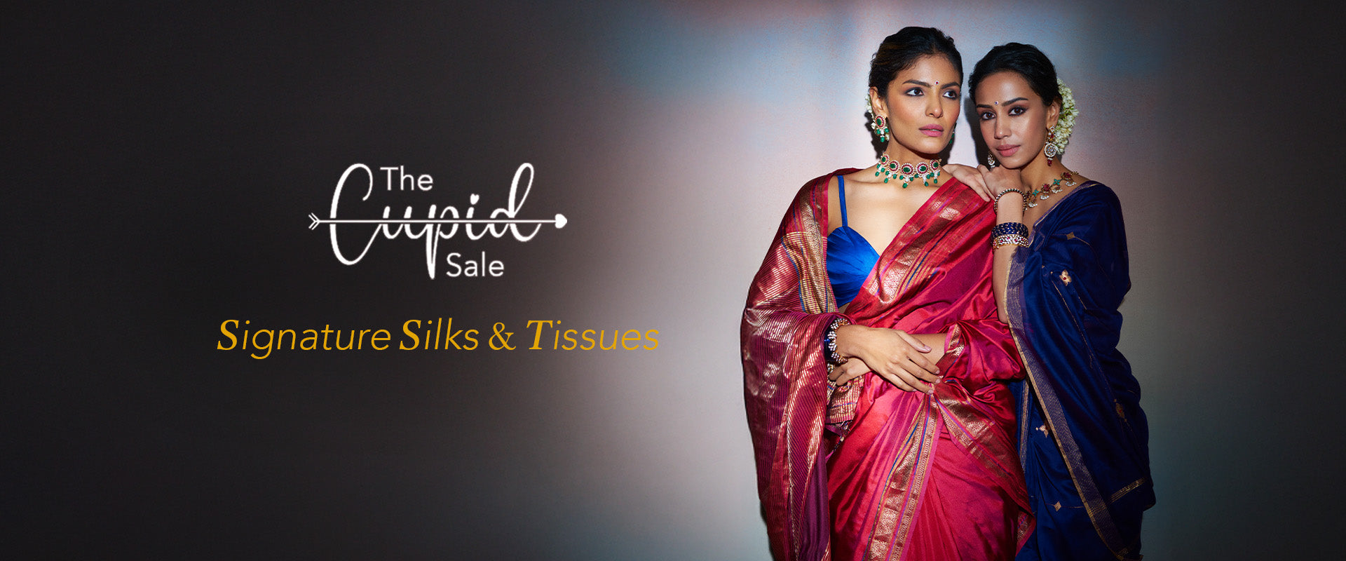 Antique gold-orange-pink tissue saree