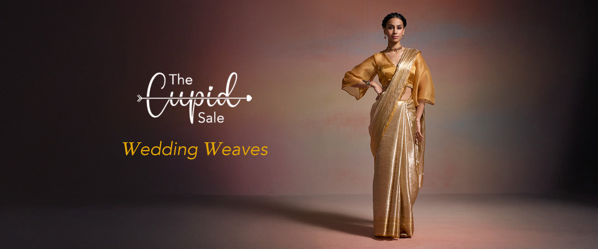 Lustrous pink-gold crinkle tissue saree