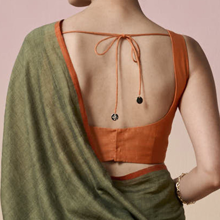 With its vibrant orange hue and chic square neckline, this blouse ties at the back for just the right mix of structure and playfulness.