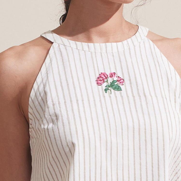Light as paper and softly expressive, Papier d’Art captures the romance of hand-drawn florals on breathable ivory cotton. This halter-neck kurta and pant set is crafted using traditional hand block printing  — where each motif tells a quiet story through its imperfections.