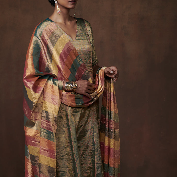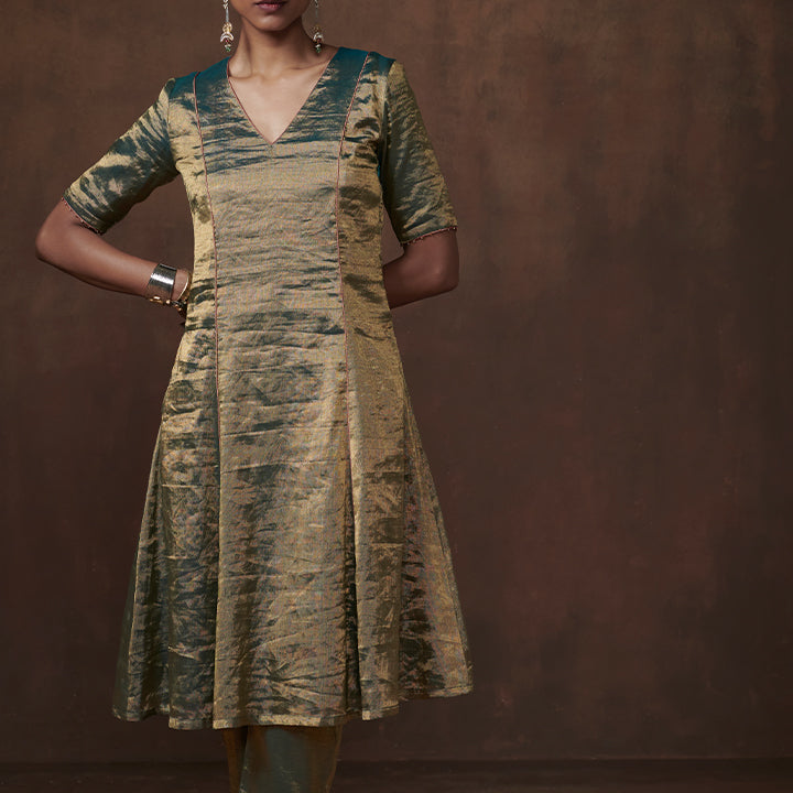 Metallic teal tissue kurta set