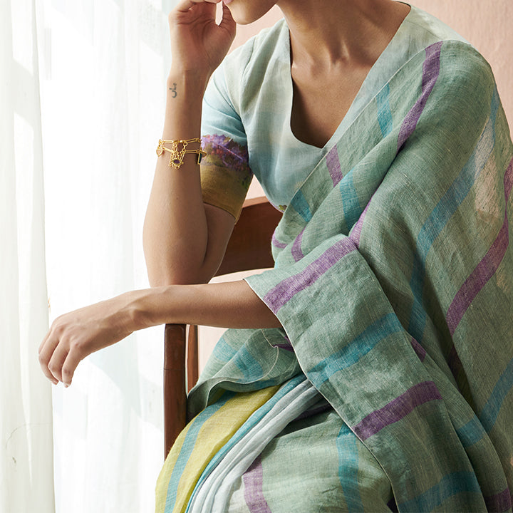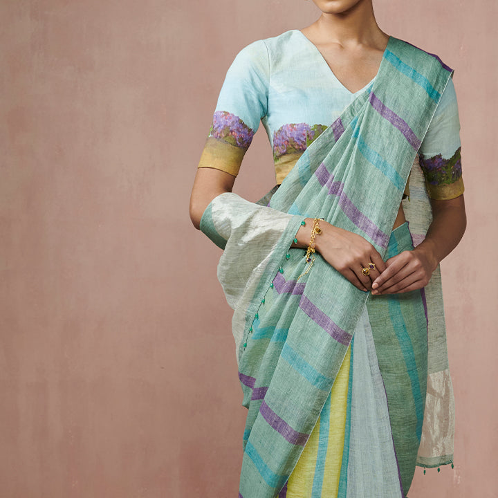 Prakriti Blouse seen on the model, Tarasha can be purchased separately.