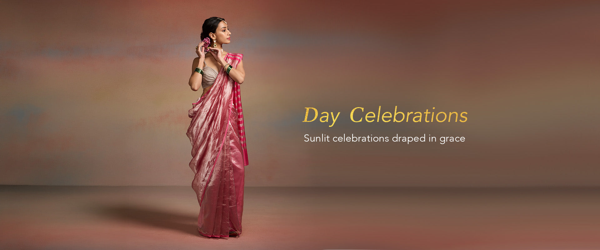 Pink-gold metallic tissue saree