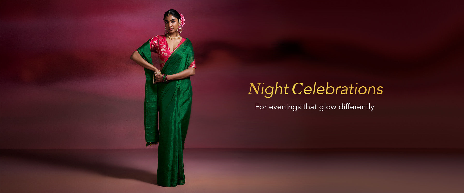 Metallic emerald green tissue saree
