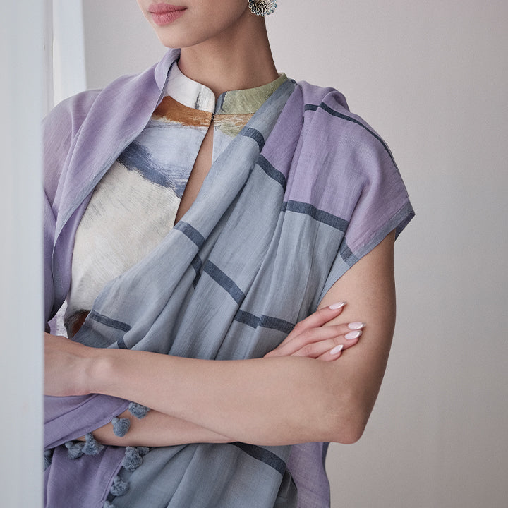 Add a touch of sophestication to your wardrobe with this handloom cotton saree woven in light tones. This saree whispers simplicity and grace Style with minimalistic accessories for a refined look.