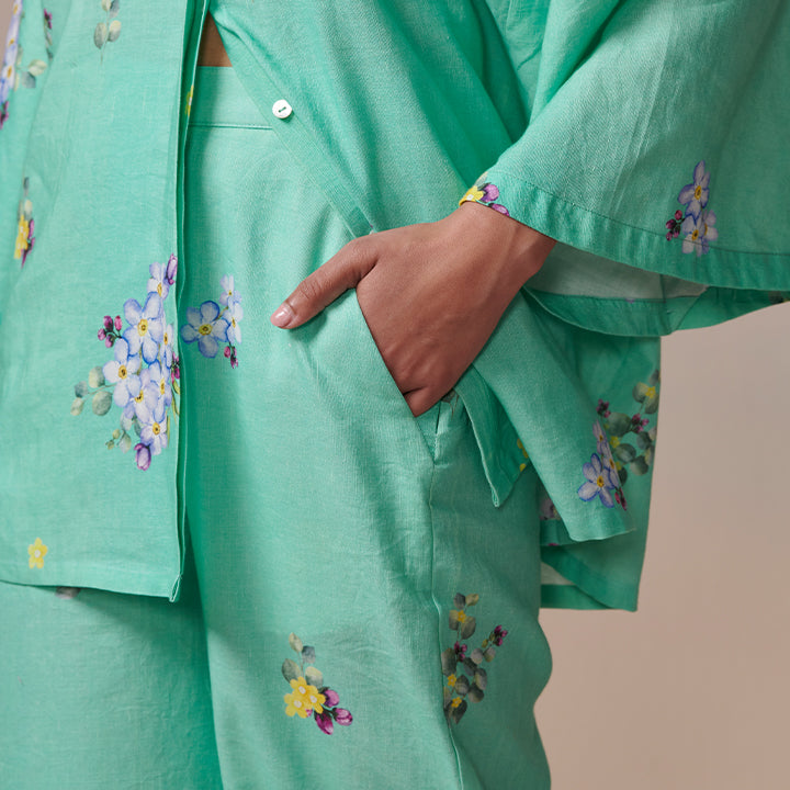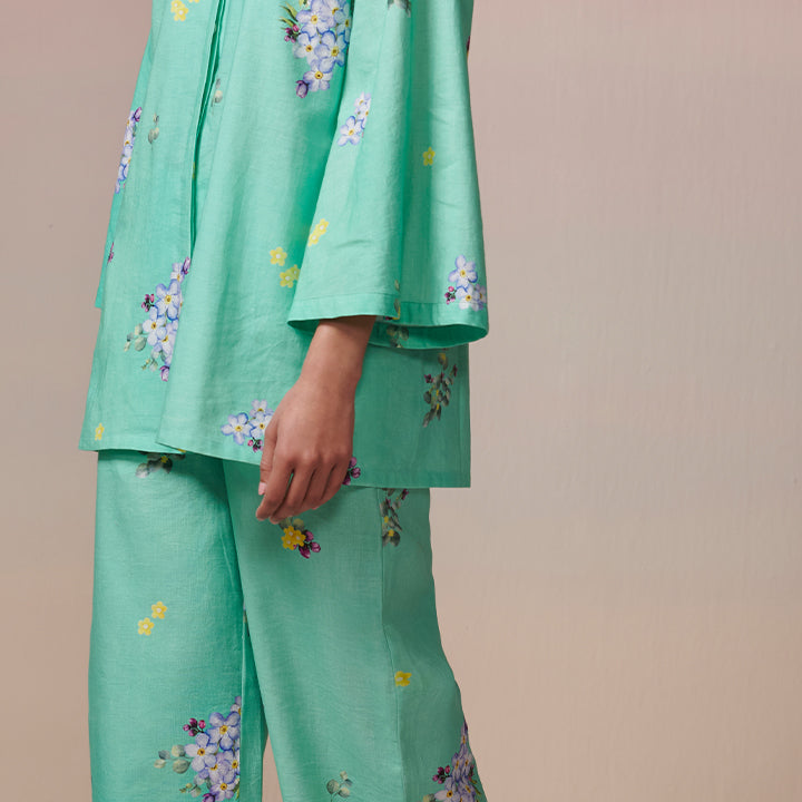 This easy-breezy shirt style silhouette is skillfully crafted from Linen-cotton fabric. "Garden Romance" is a graceful ensemble that complements your style.