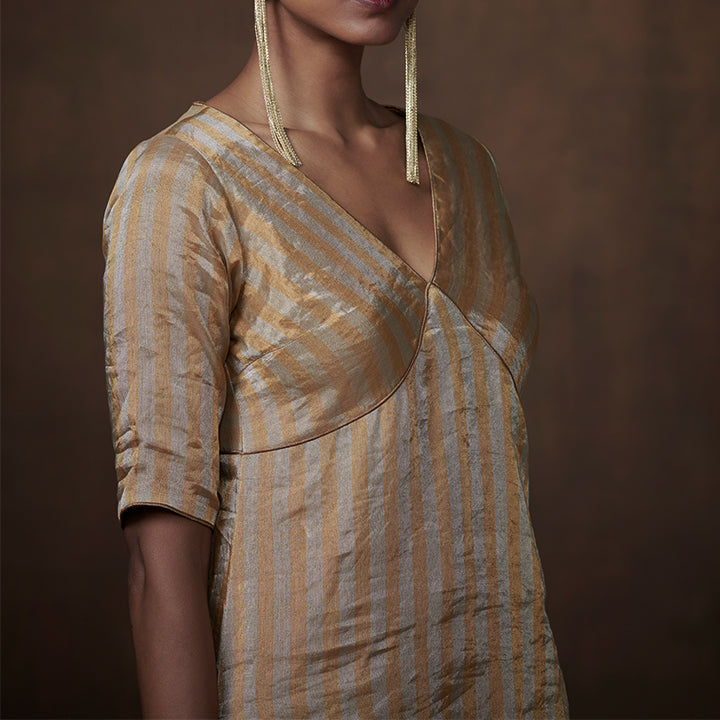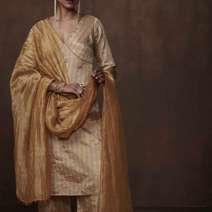 Gold-silver striped tissue kurta set
