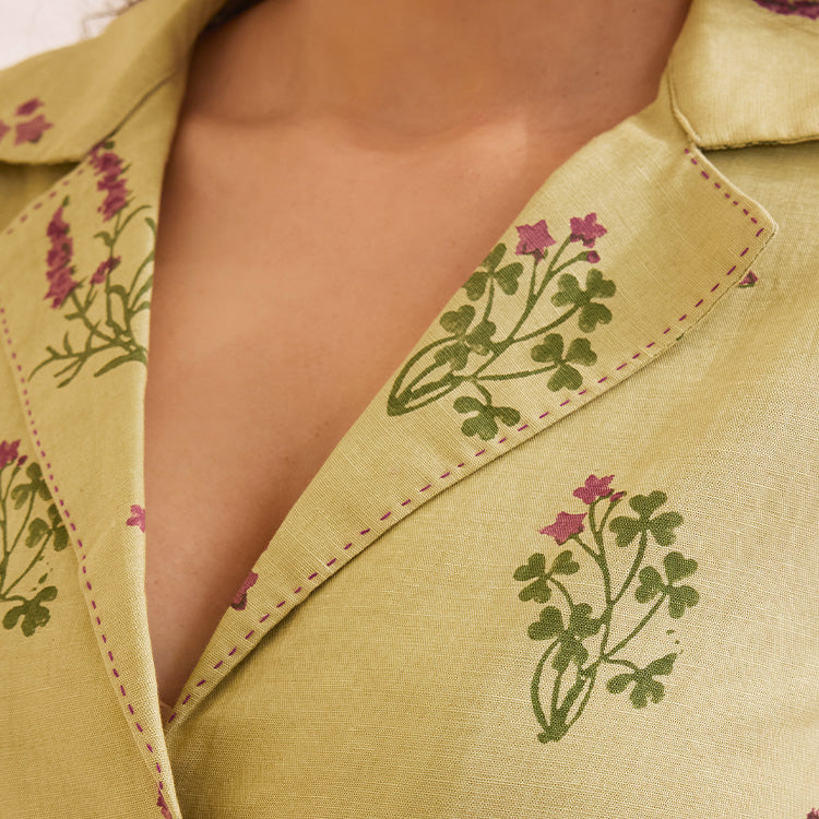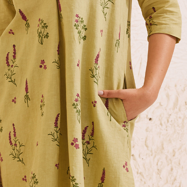 With music as a muse, our Sargam is artistically stunning. Hand-block printed in Sanganer, this linen cotton set with dainty flora makes for a definite head-turner.