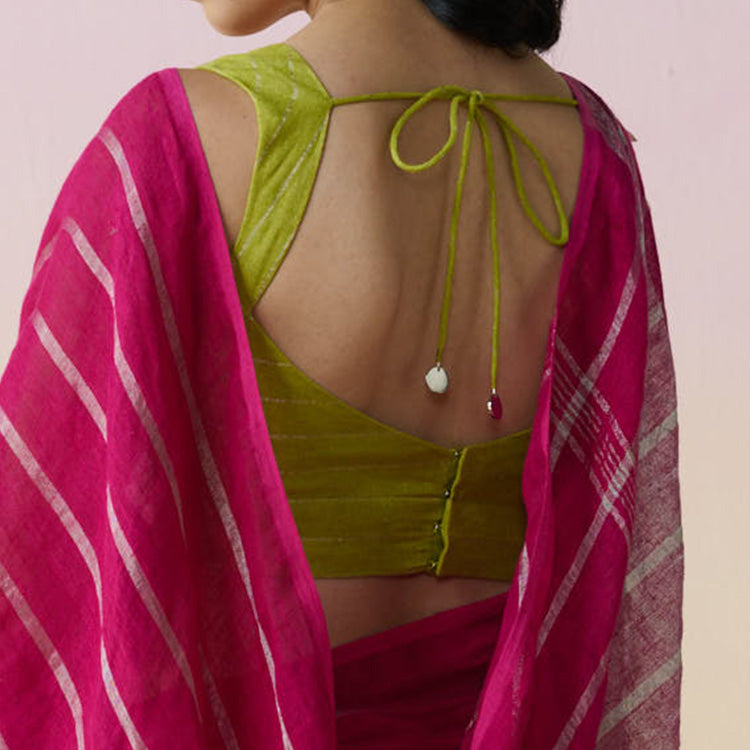 Bold and bright in parrot green, this handwoven linen bustier blends comfort and craftsmanship — perfect for dressing up with minimal effort.