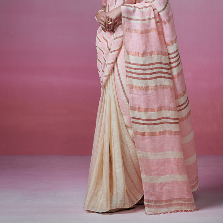 Multicoloured pastel linen saree with sripes
