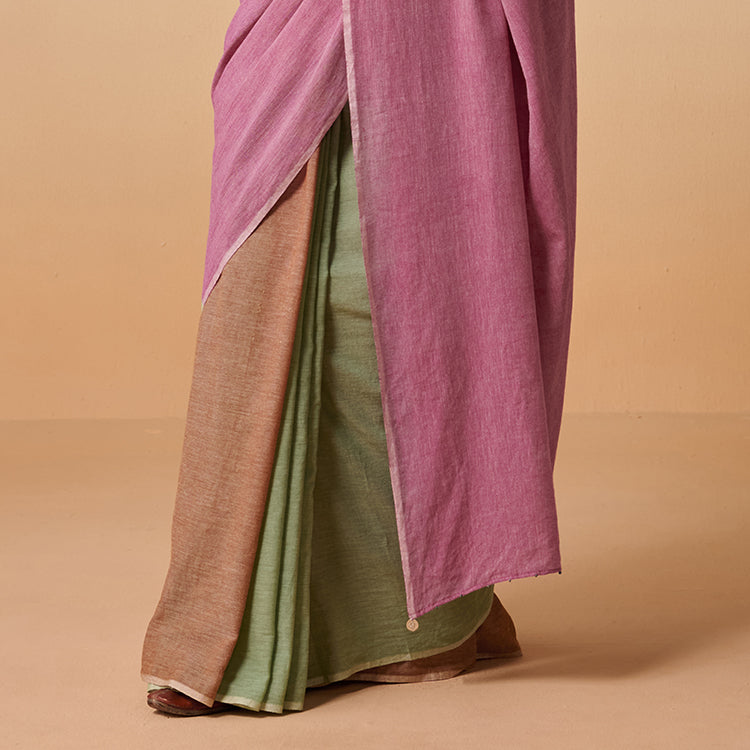 Timeless handloom cotton saree in purple, green and brown hues