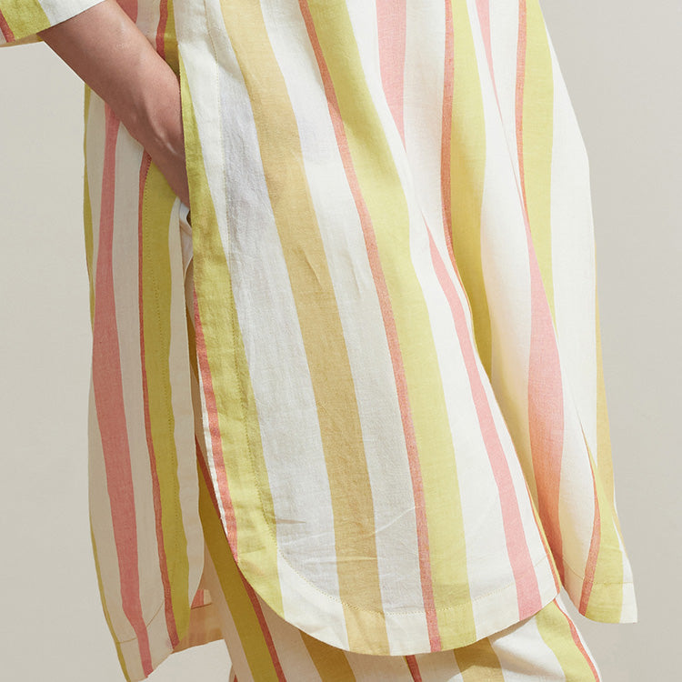 Kurta set in striped in 100% handwoven cotton