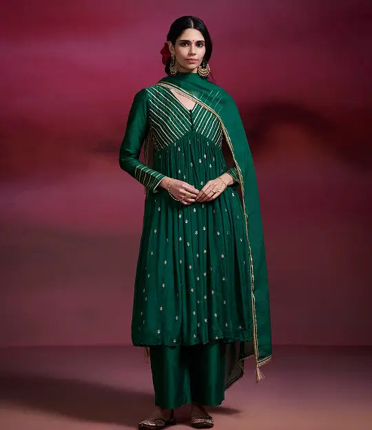 No underskirt is required with our pre-stitched saree as it comes with an attached underskirt