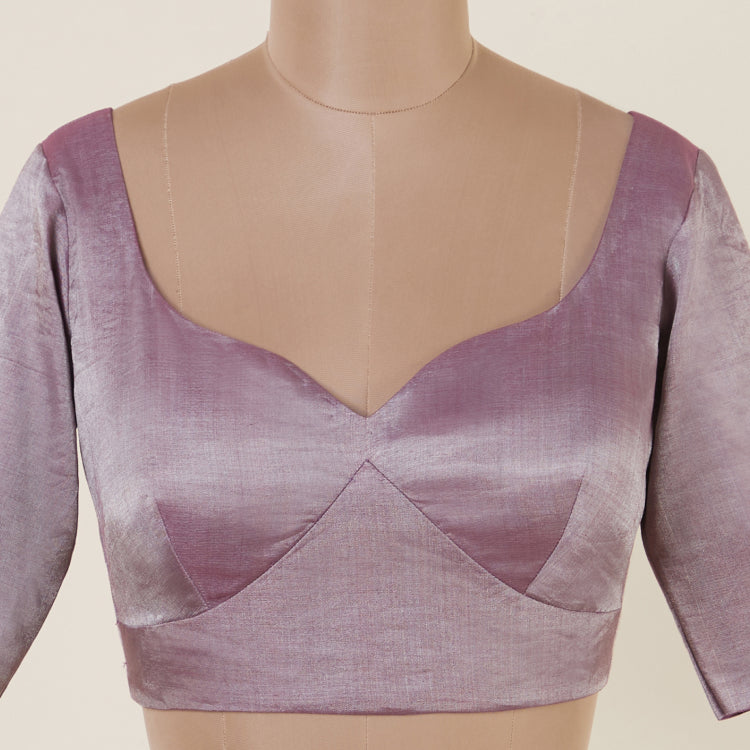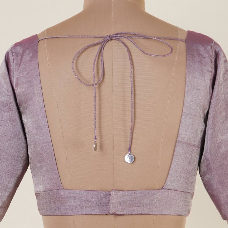 A quiet ode to femininity, this blouse with a sweetheart neckline is crafted in handwoven tissue. The delightful purple with dori tie-up detail at the back adds unmatched luxury to your ensemble.