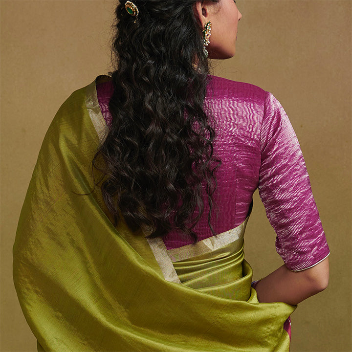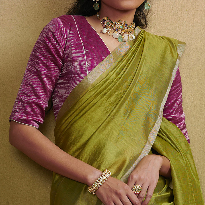 Umang, a magenta Chanderi silk blouse with Zari accents to elevate your statement style any time of the season.